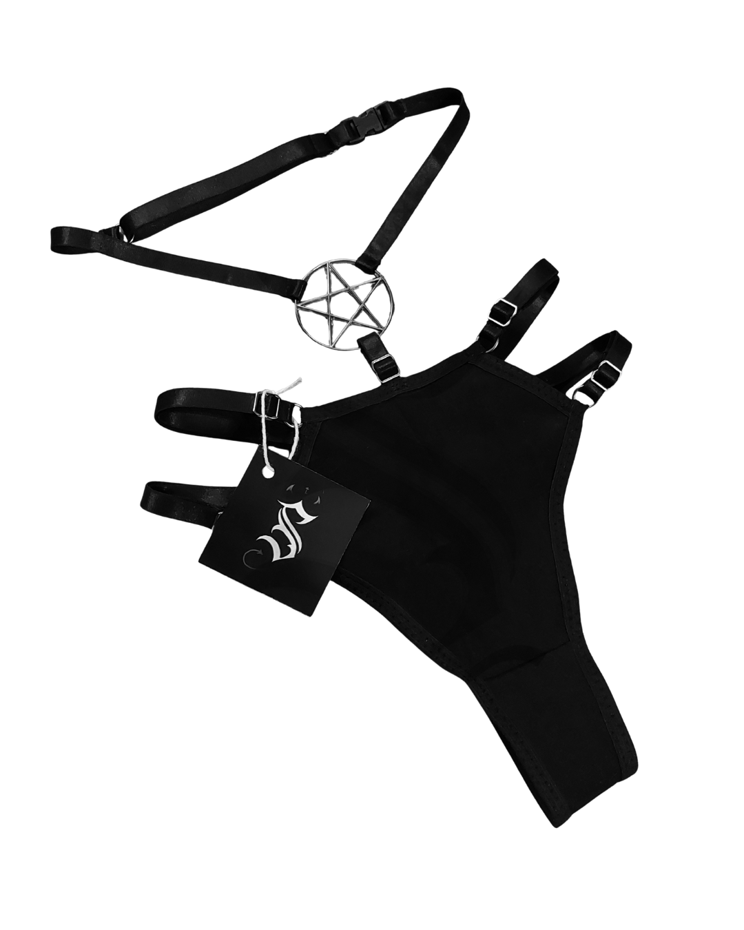 Ganchito desmontable (en cintura) y dije de Pentagrama de Metal Niquelado.