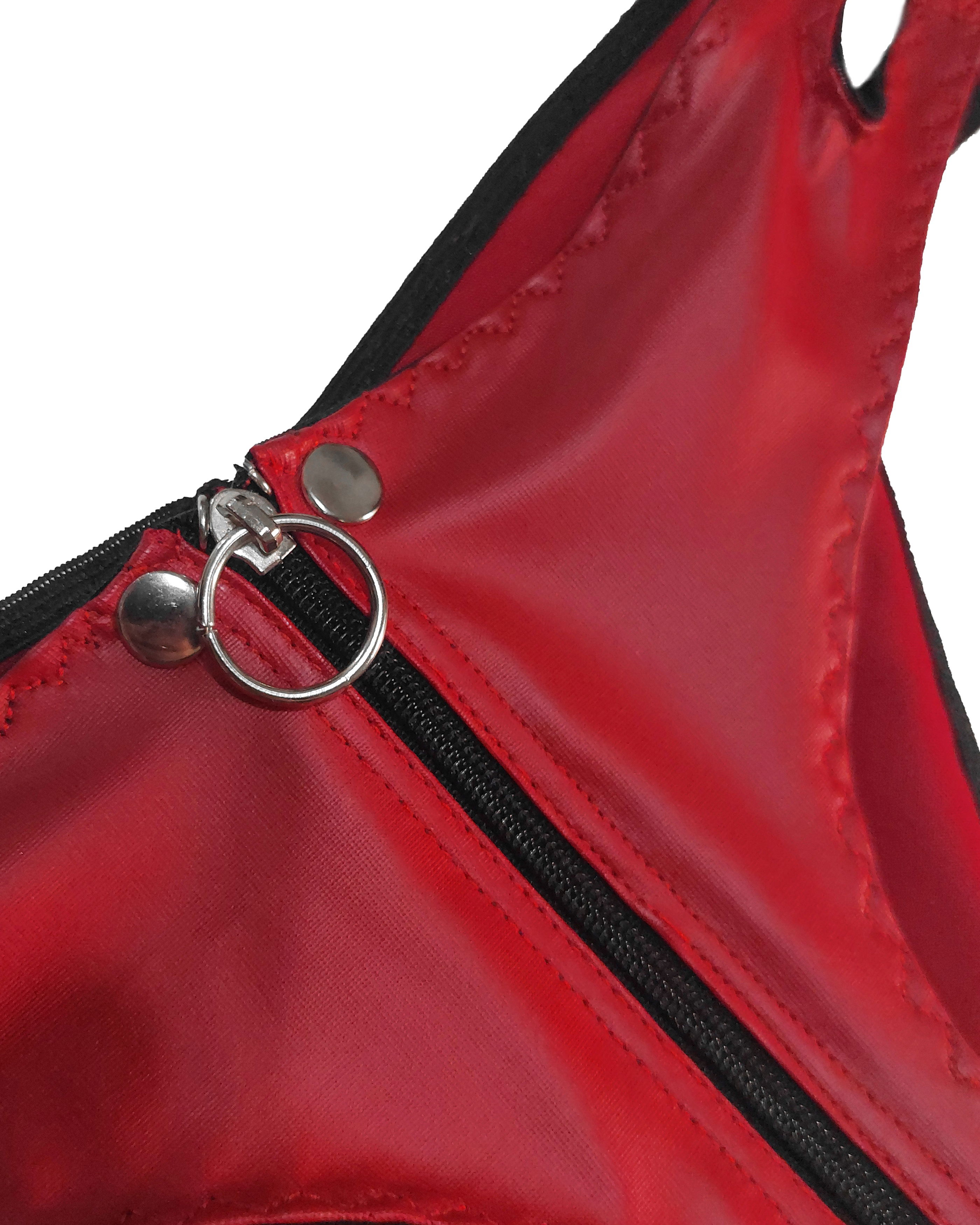 Espalda: Cierre funcional hasta entrepierna con argolla de metal fundición.